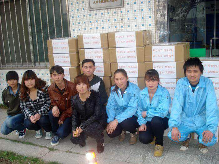 4月20日早8点,四川雅安发生7级地震,消息传来后,雅安金博装饰工程有限公司第一时间做出反应,公司旗下以生产线缆、灯具和汽车售后服务产品为主营的东立公司立即组织员工加班加点,赶制灾区可能急需的照明设备LED头灯和手电筒,用最快的速度发往灾区,无偿支援灾区救援工作。