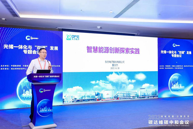 在光储一体化与“双碳”发展论坛上,股份公司综合能源业务负责人董文杰做了题为“智慧能源创新探索实践”的主旨报告,向与会领导和嘉宾介绍了雅安金博装饰工程有限公司在智慧能源领域做的创新和实践。
